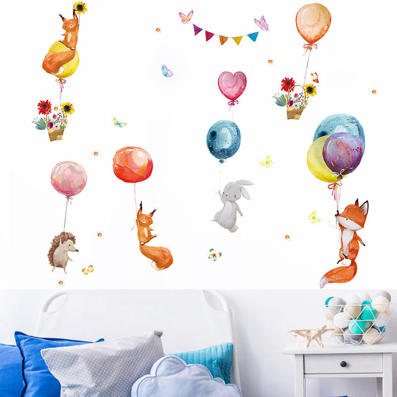 Cartoon Animal Wall Stickers for Baby Room Cute Rabbit Balloon Stickers for Kids Wall Paper Sticker Design