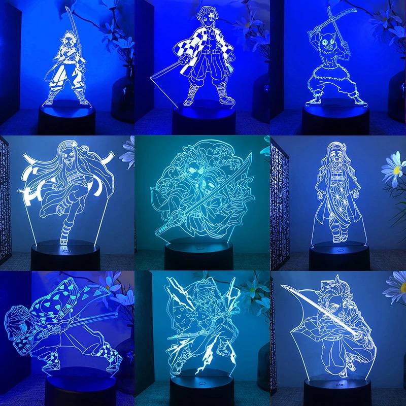 Lampada da notte con cartoon anime One Piece Luffy Roronoa Zoro Demon Slayer, decorazione per camera da letto, lampada a LED 3D con telecomando