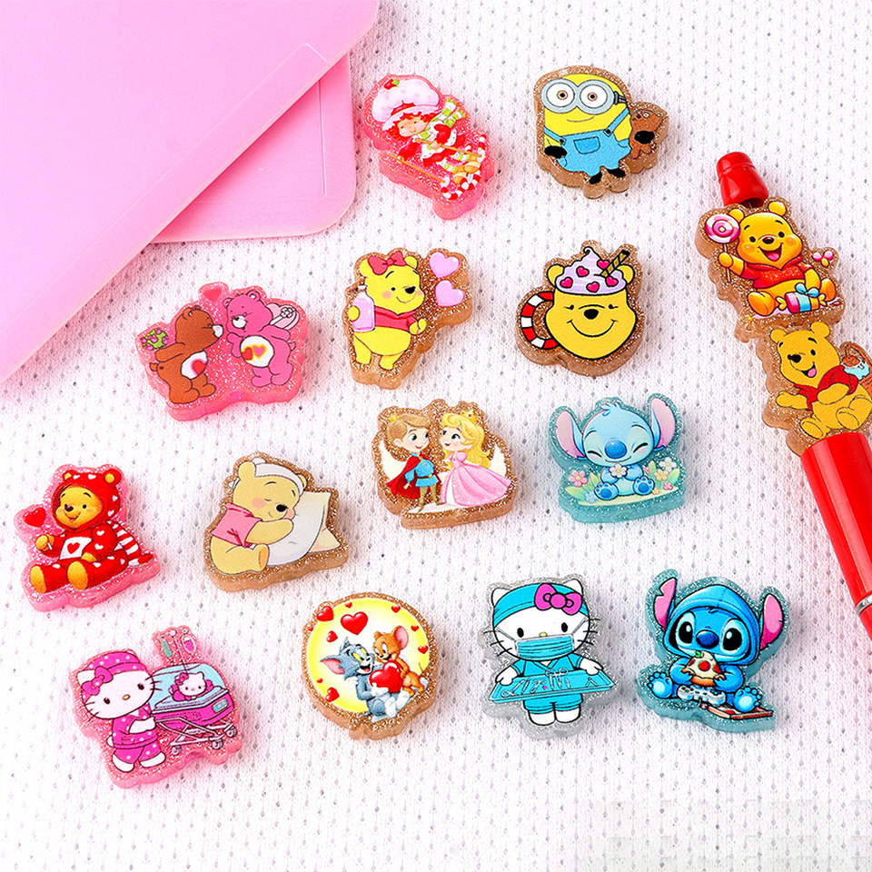 Cartoon Bear Acrylic Focal Beads Straight Hole Win Nie Pooh Anime Characters & Animals DIY Acrylic Beaded Keychains Accessories