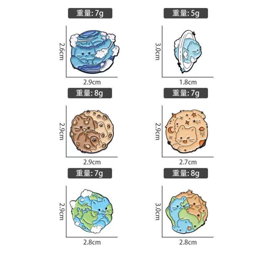Accessorio geometrico con gatto dei cartoni animati in metallo carino con spille in metallo prezzo all'ingrosso terra pianeta onde spilla vestiti zaino distintivo spilla con risvolto