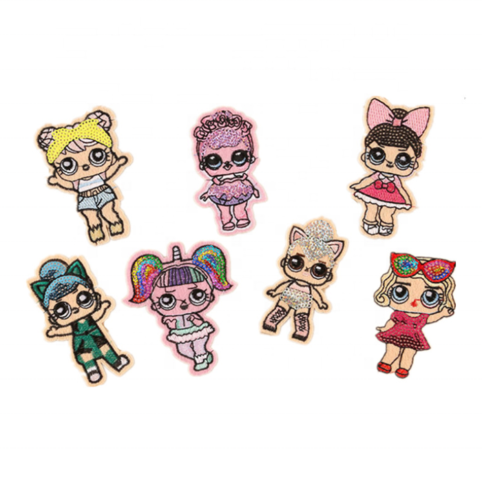 Toppe ricamate su misura per bambole di cartone animato per abbigliamento