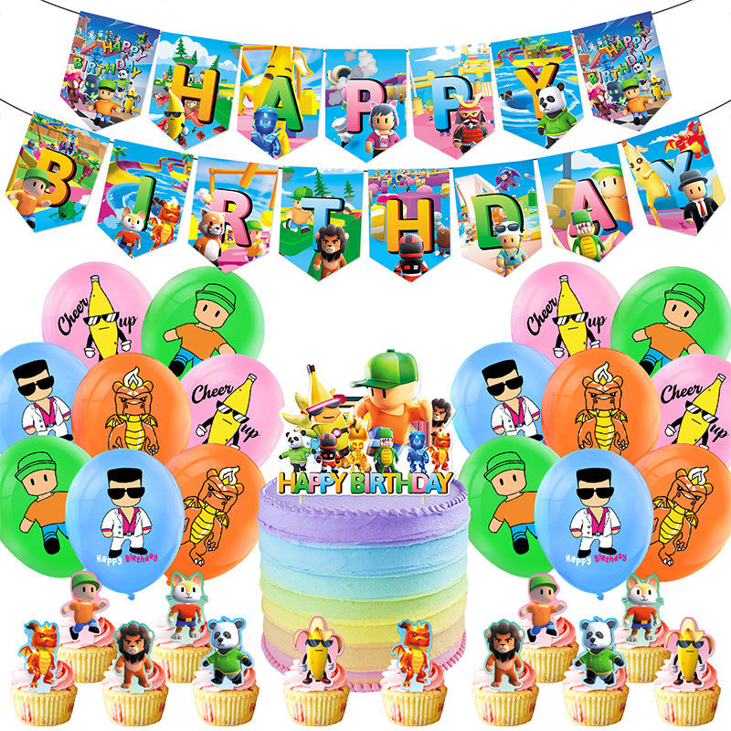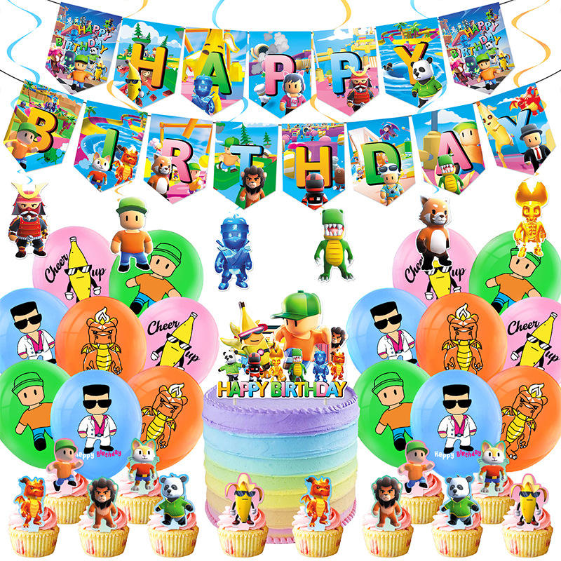 Decorazioni per Feste a Tema Gioco Cartoon Stumble Guys, Striscione di Buon Compleanno, Topper per Cupcake, Palloncini Fai-da-Te