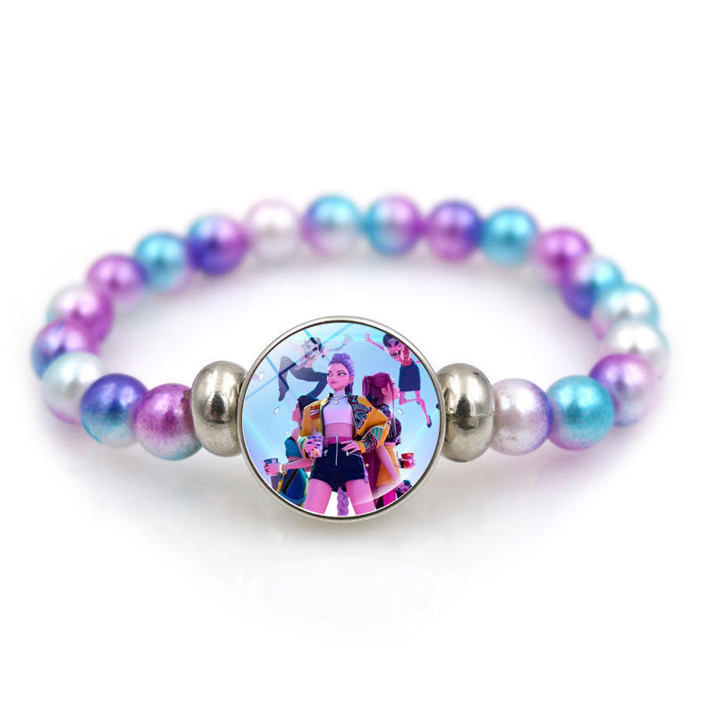 Braccialetto elastico con perline colorate per ragazze, ispirato ai personaggi dei cartoni animati K-Pop Demon Hunters.