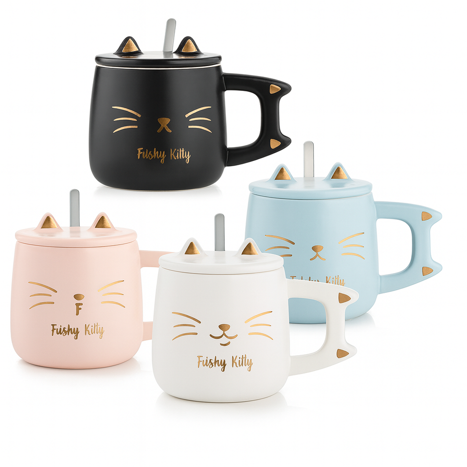 Cartone animato gattino tazza coperchio 400ml di capacità lavastoviglie microonde sicuro con forma di fungo Design per regali promozionali cucchiaio