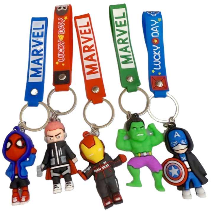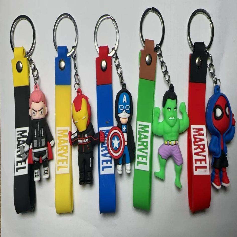 Cartoon Marvel Keychain Avengers Soft Rubber Resin Figurine Pendant Car Key Trendy Small Accessories