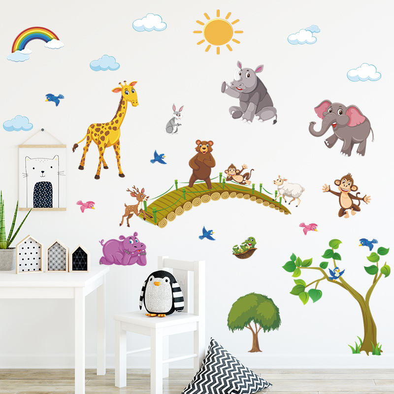 Cartoon Monkey Wall Stickers Creative Forest Jungle Wallpaper Kid's Bedroom Decorative Decal Self Adhesive TV Background Mural