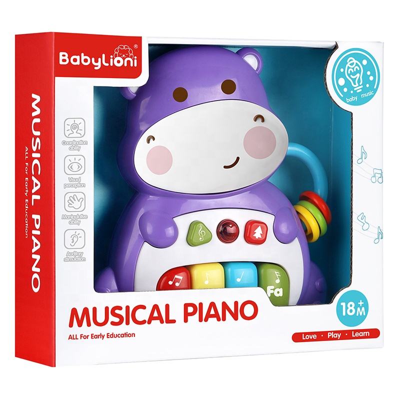 Cartoon Music Piano Battery Operated Toddler Playing Hippo Key Piano Baby Toys Musical