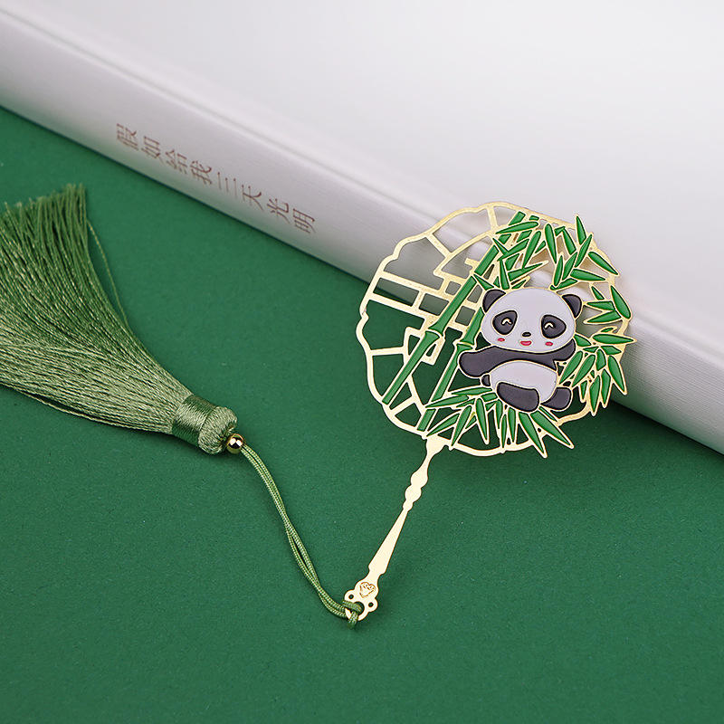 Cartoon Panda Fan Shaped Metal Bookmarks Creative Brass Fringed Animal Book Page Mark With Tassel Teacher Gift Kawaii Stationery