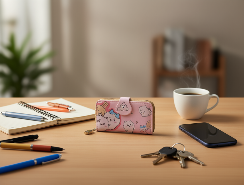 Portafoglio con stampa cartoon e bottone singolo, di medie dimensioni, per uso quotidiano, unisex, in materiale PU