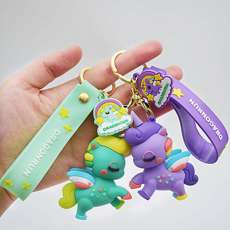 Cartoon Rainbow Horse Little Pool Unicorn Keychain Pendant Cute Girl's Bag Accessory Figurine Small Acrylic Carabiner Perfect