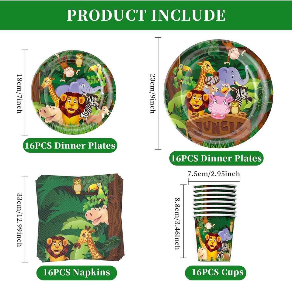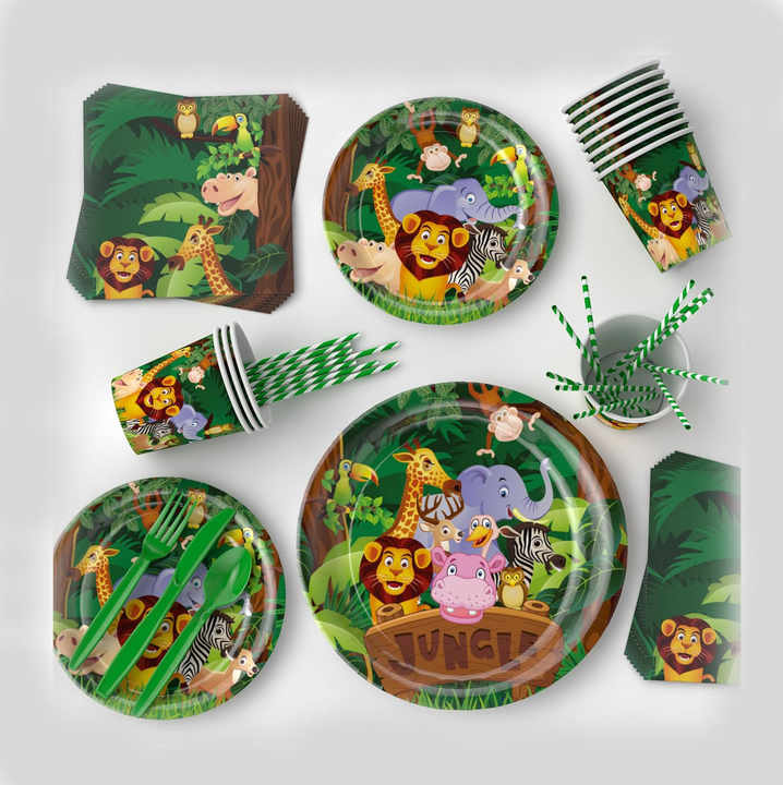 Set di Decorazioni per Festa di Compleanno a Tema Safari e Giungla, Stoviglie Usa e Getta, Accessori per Feste a Tema Animali Selvatici