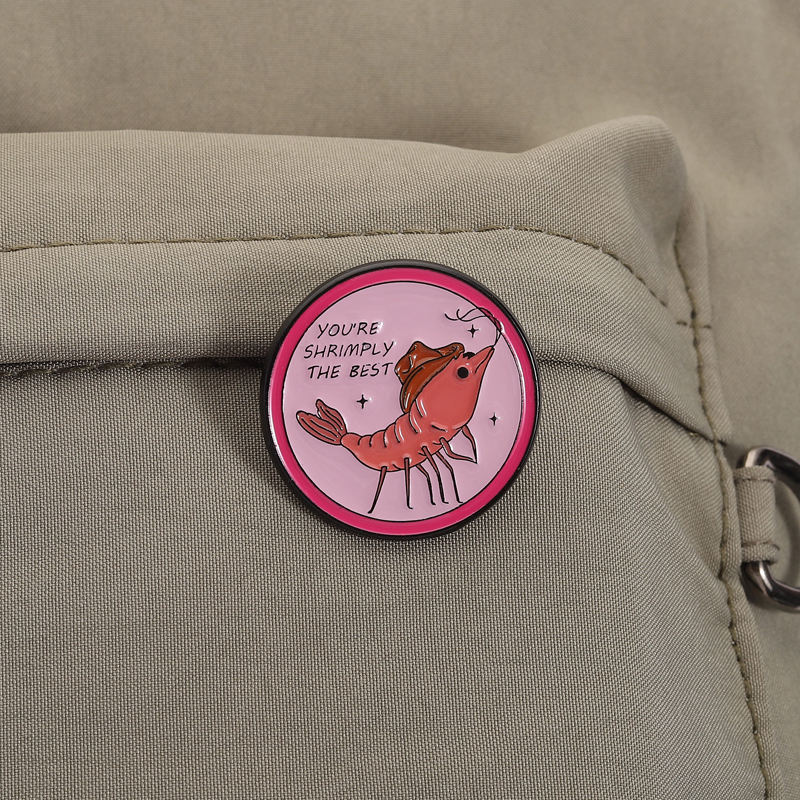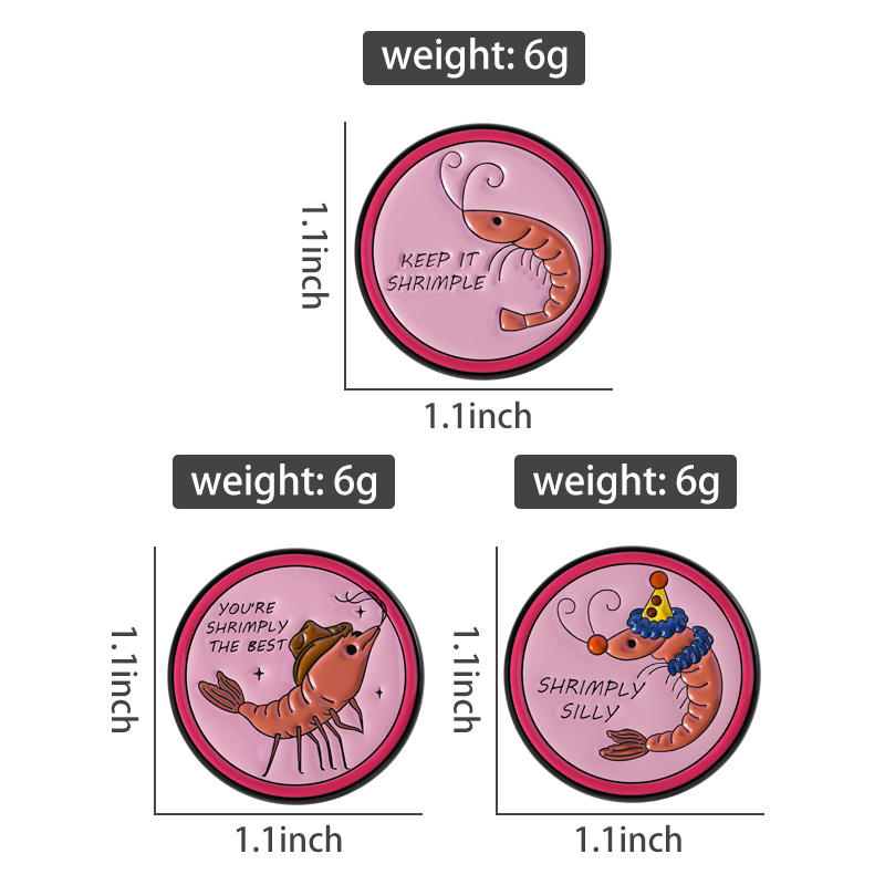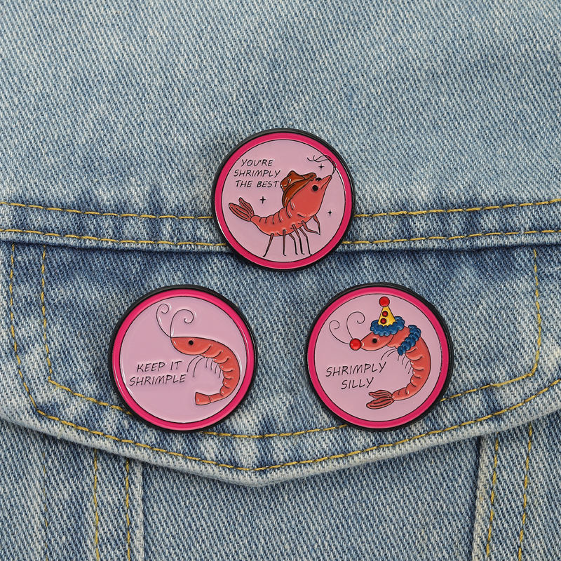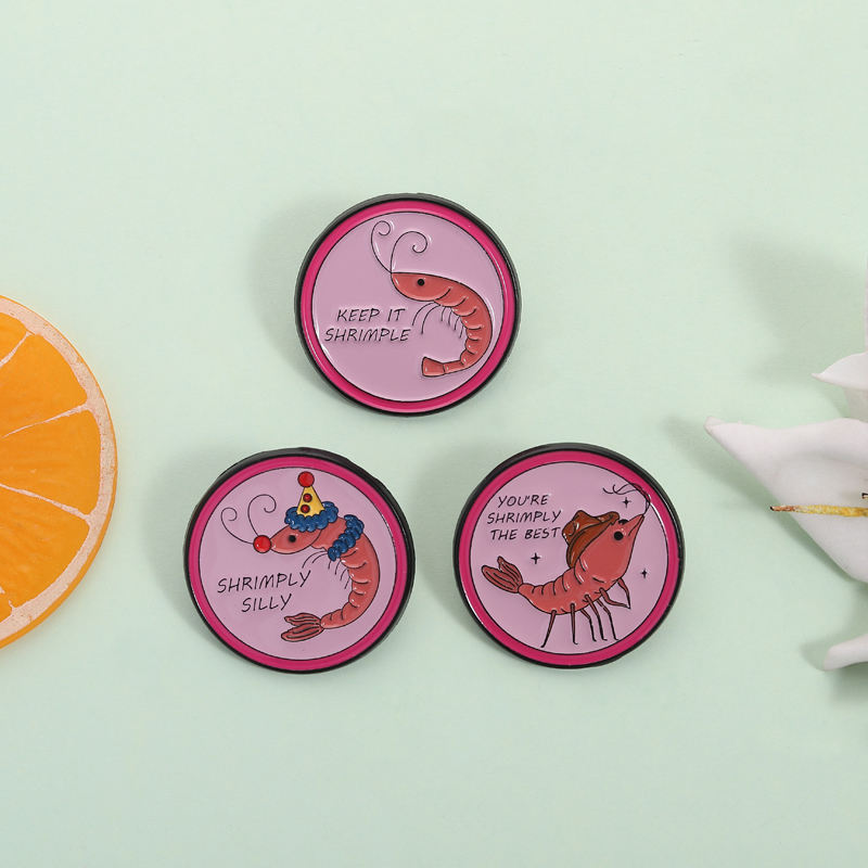Cartoon Shrimp Pun Phrase Enamel Pins Keep It Shrimple Clown Shrimply Silly Brooches Lapel Badge Metal Pins Wholesale