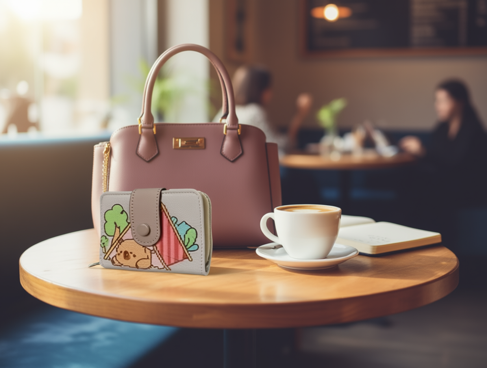 Portafoglio Pieghevole con Bottone Singolo, Design Cartoon, Piccole Dimensioni, in Microfibra e Pelle Sintetica per Uso Quotidiano
