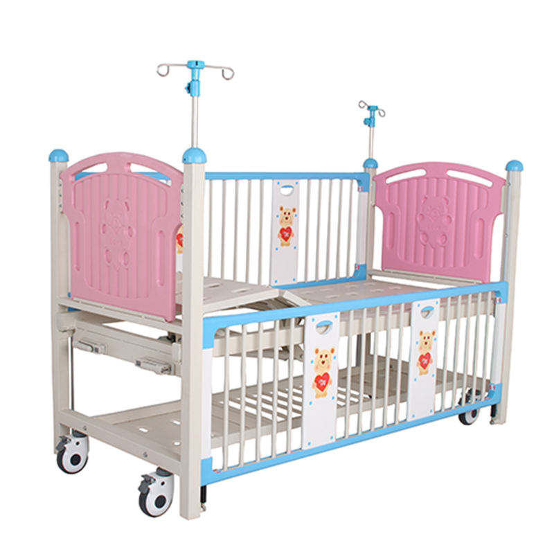 Letto di ospedale pediatrico a 2 funzioni manuale a tema cartone animato con ruote per la cura dei bambini