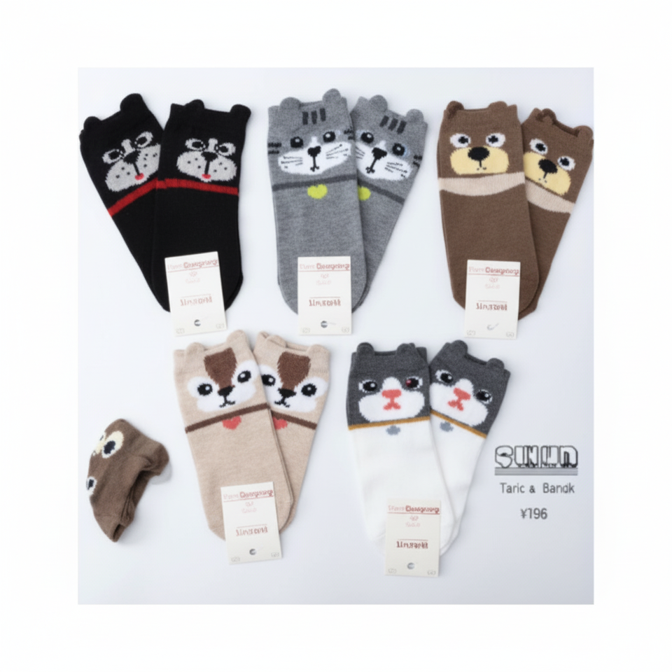 Cartoon Women's Boat Socks 10 Styles in a Box Embroidered Animal Print Lightweight Breathable Ankle Length Custom Logo Design