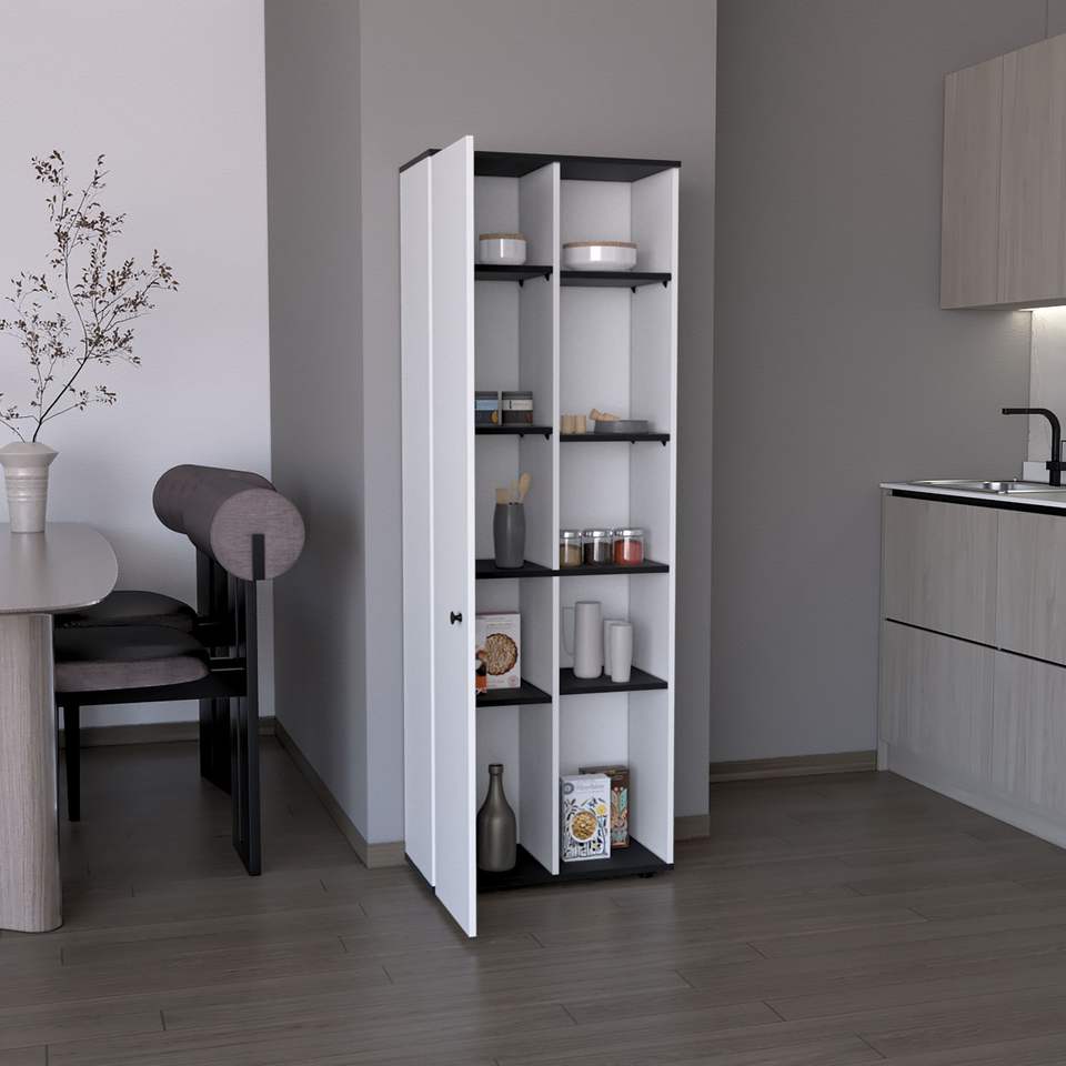 Armadio da cucina Cary 67 pollici H bianco/nero con una porta e cinque ripiani interni/esterni-Depot E Shop