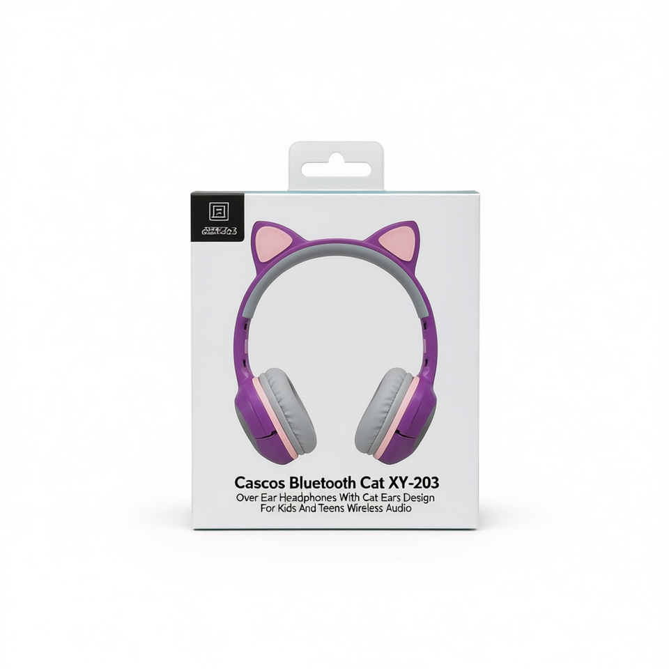 Cuffie Cascos per Bambini XY-203 Over-Ear con Design a Orecchie di Gatto per Bambini e Adolescenti, Wireless, Driver Dinamico, Bassa Latenza