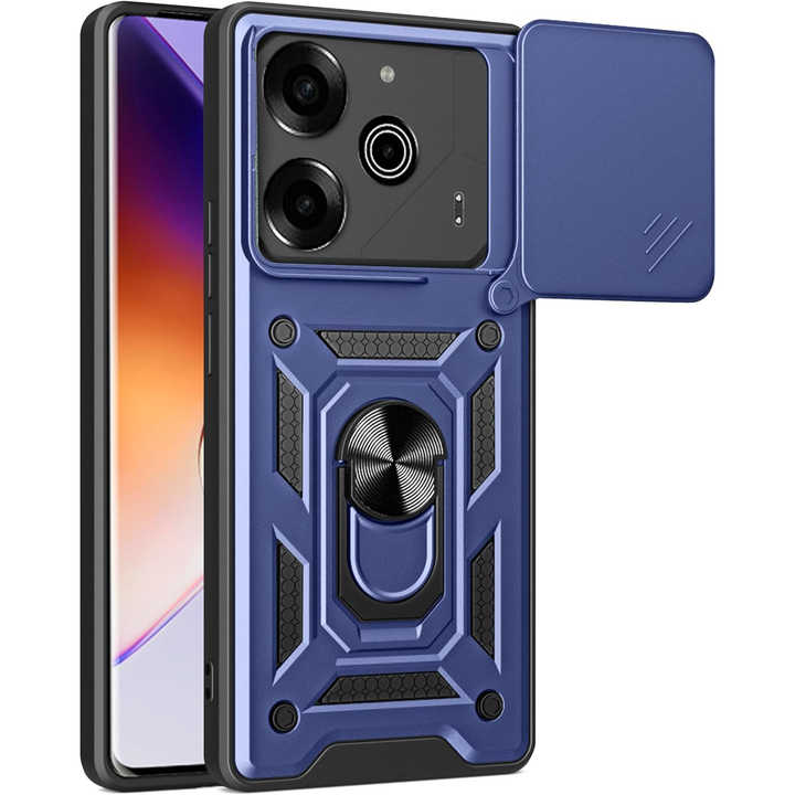 Tecno Custodia antiurto PC+TPU per Tecno Spark 30 5G con copertura fotocamera scorrevole e cavalletto magnetico girevole