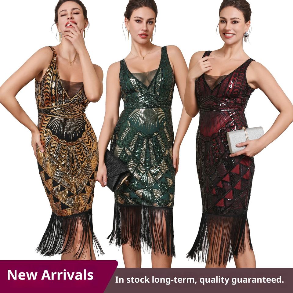 Cashmere Sequin 1920S Gatsby Tassel Spaghetti Strap Diamond Spring Elegant Pencil Silhouette Tea-Length Evening Annual New Years