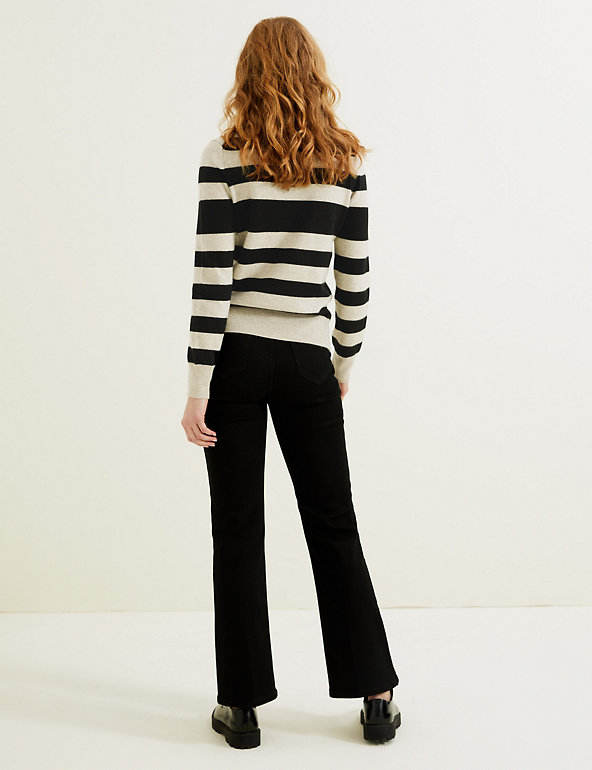 Maglione a righe in lana di Cashmere bianco e nero girocollo manica lunga da donna in Cashmere