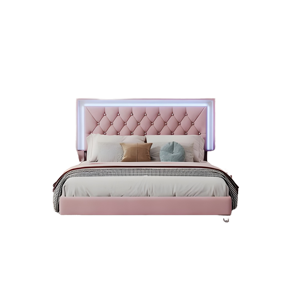Casoria Modern King-Size Bedroom Bed Frame Set with Solid Wood Mahogany Sleek Bedding Included Soft Style