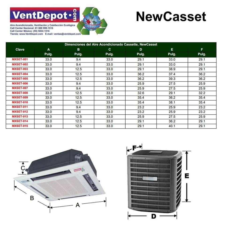 Condizionatore d'Aria a Cassetta, MXSET-009, 48000 BTU, 4.0 Tonnellate, R-410A