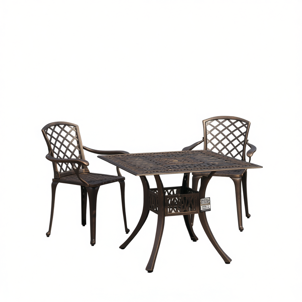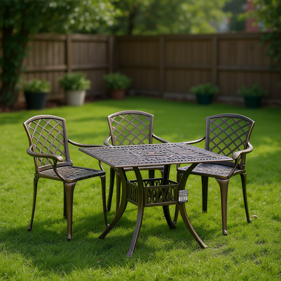 Set Bistrot in Alluminio Pressofuso e Bronzo, 3 Pezzi, Arredamento da Giardino Resistente alle Intemperie, Design Tradizionale
