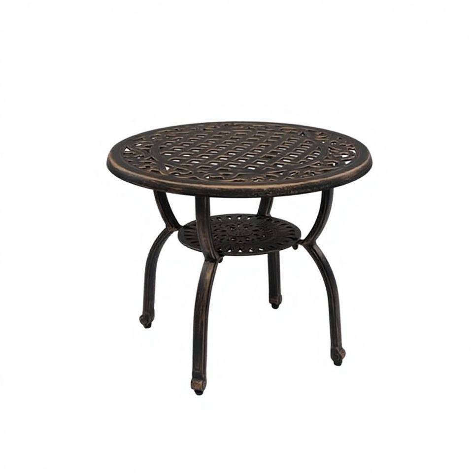 Tavolino da Esterno in Alluminio Pressofuso, Finitura Bronzo Anticato, Antiruggine, per Patio, Caffè, Bistrot, Giardino, Portico, Balcone, Appartamento