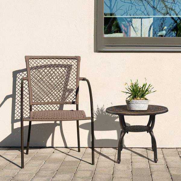 Cast Aluminum Outdoor Side Table Anti-Rust Indoor Garden Porch Balcony Antique Bronze Finish for Patio Coffee Bistro Table Table