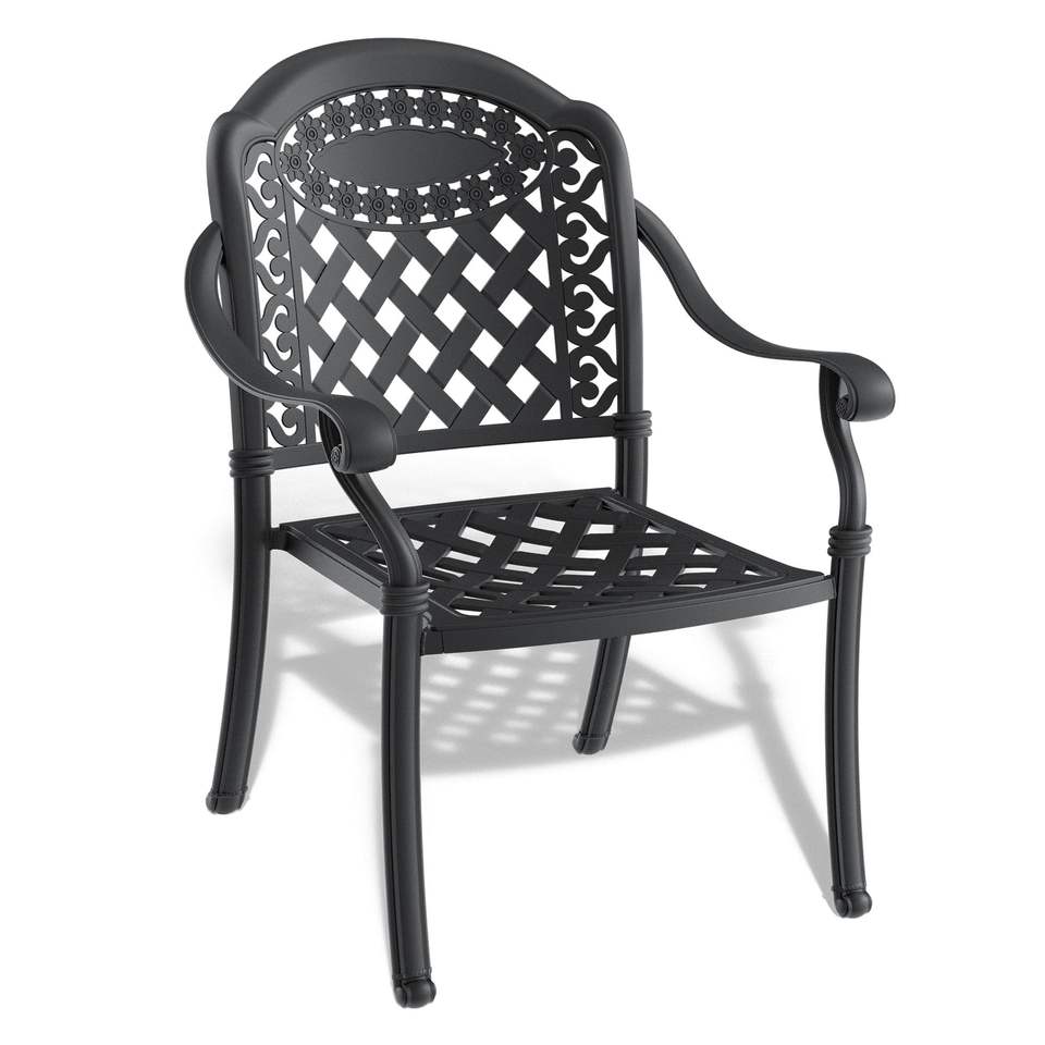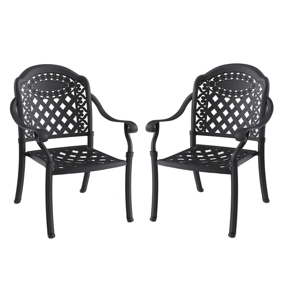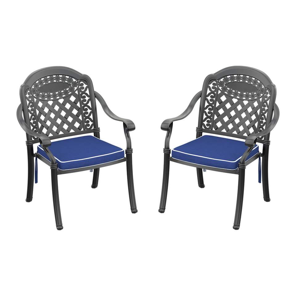 Set di 2 Sedie da Pranzo da Esterno in Alluminio Pressofuso con Telaio Nero e Cuscini in Colori Assortiti per Uso in Giardino