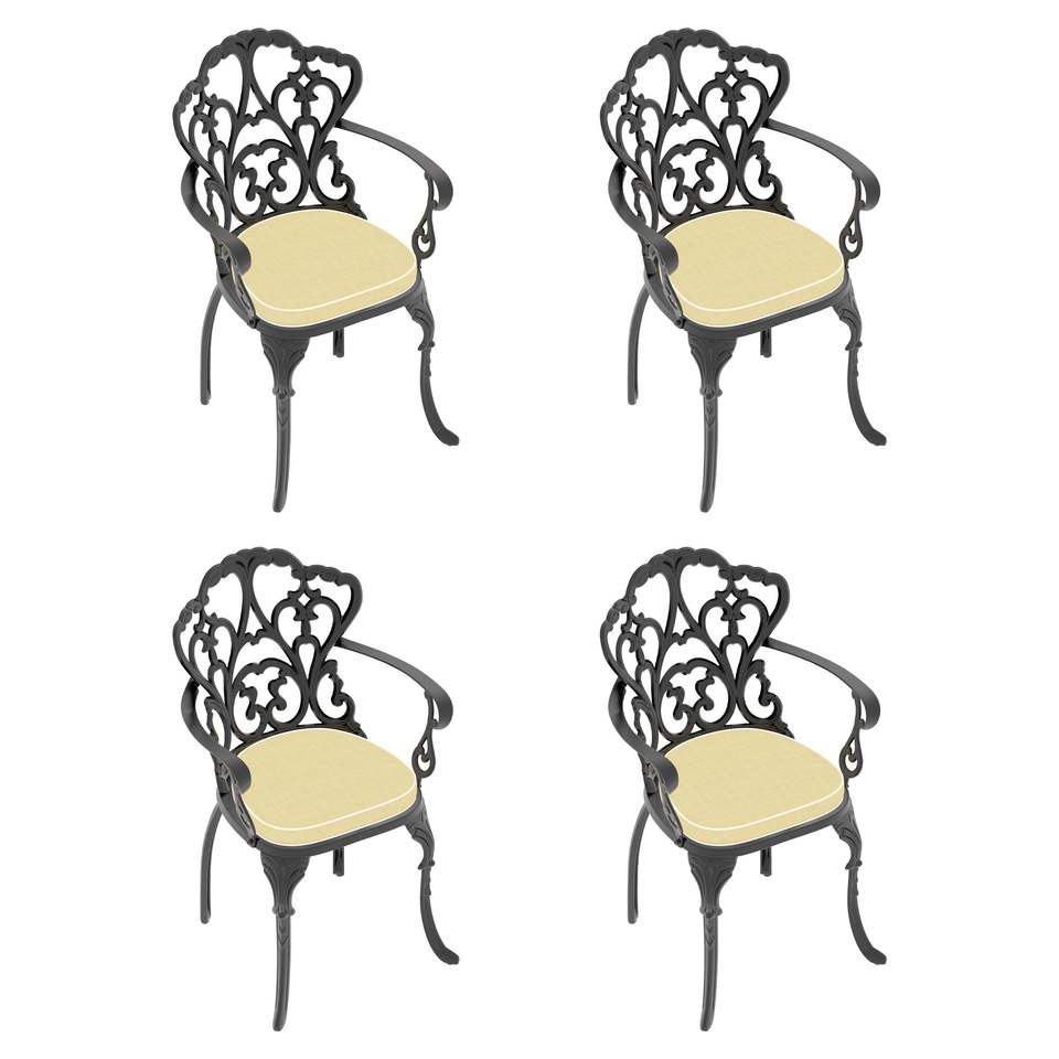 Set di 4 sedie da pranzo da patio in alluminio pressofuso con struttura nera e cuscini in colori assortiti