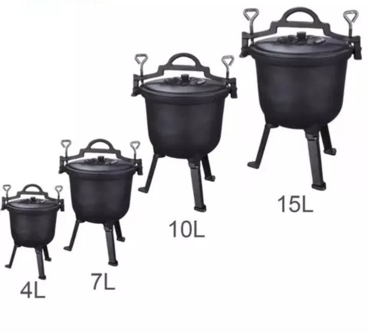 Pentola da Caccia in Ghisa Polacca a Tre Gambe, Calderone da Campeggio, Forno Olandese, Kazan 8 L, Pentola per Plov Uzbeko, Utensili da Cucina in Ghisa