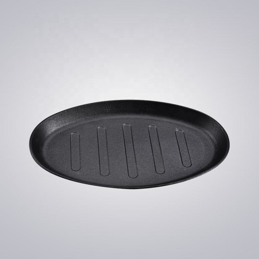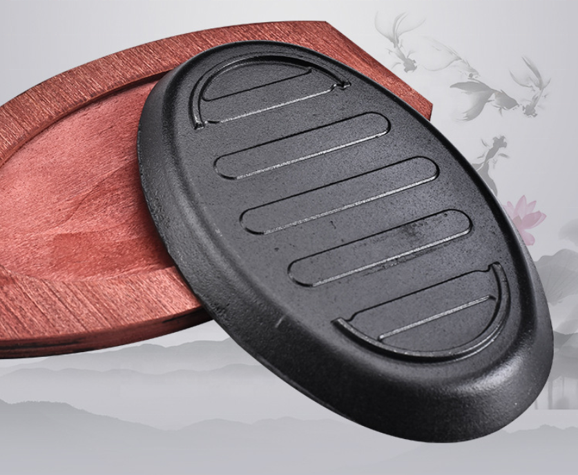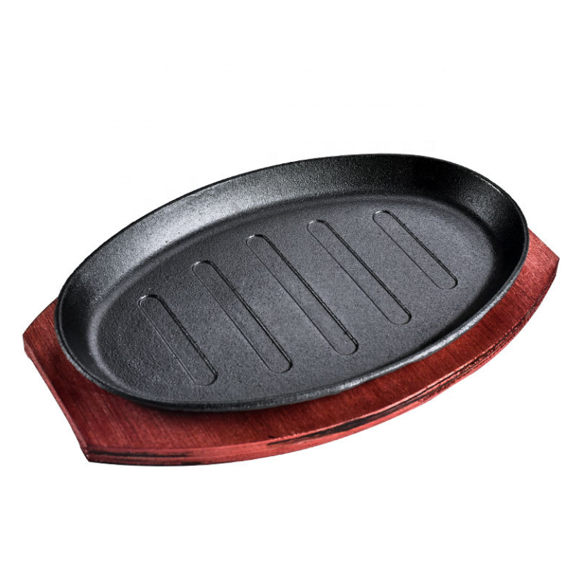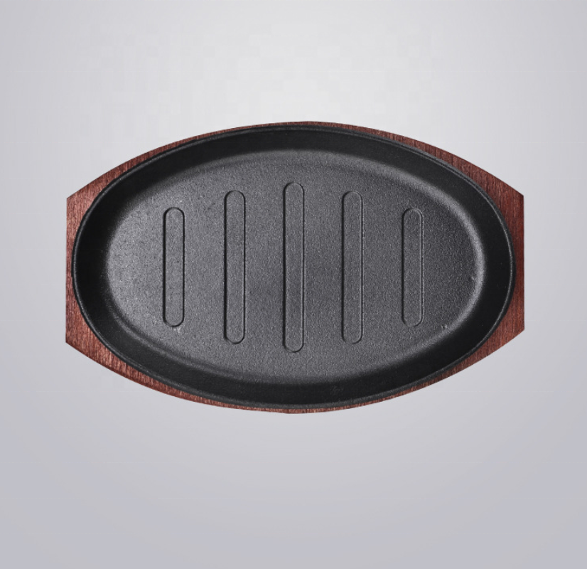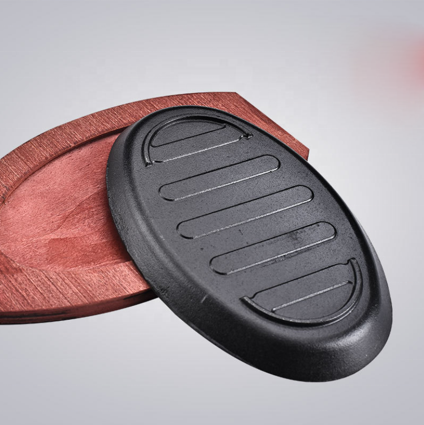 Piatto da portata in ghisa per bistecche e fajitas, con base in legno, 8'' 10'' 12''