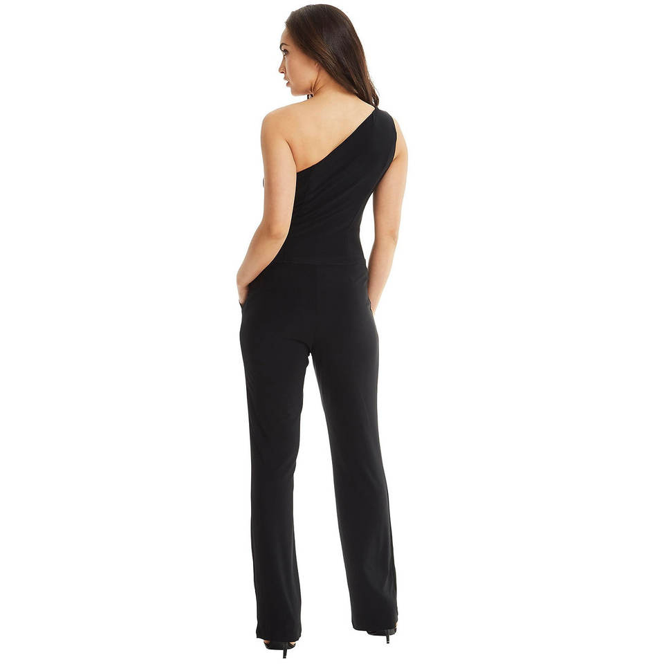 Casual Black One Shoulder Pantsuit for Summer Printed Vintage Decoration Sequins Stretch Jersey Fabric 100% Polyester Lining