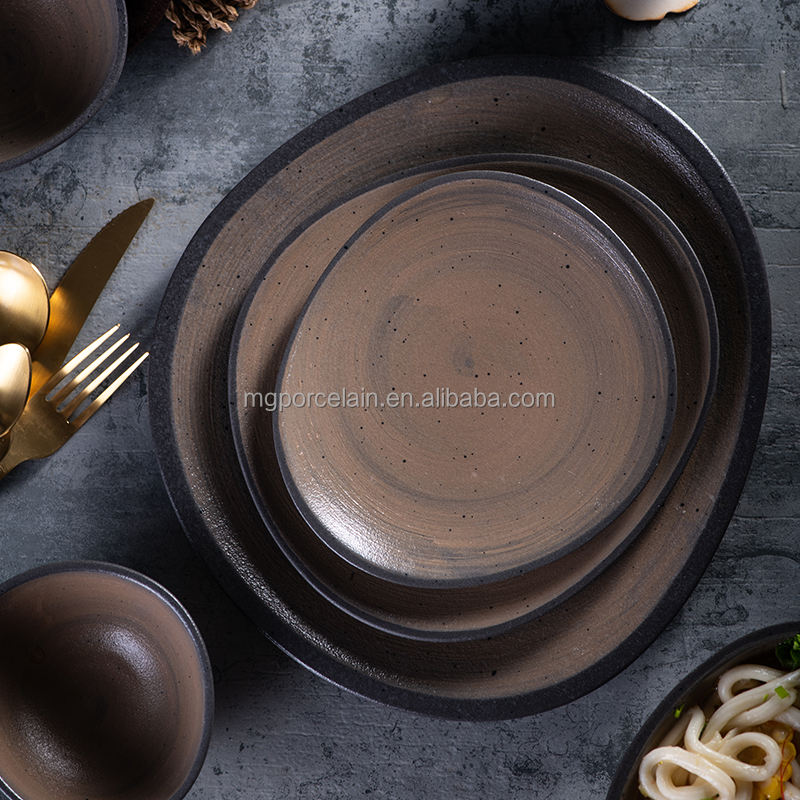 Piatto da portata e stoviglie in ceramica casual, stampati a mano sotto smalto, in gres, per la tavola