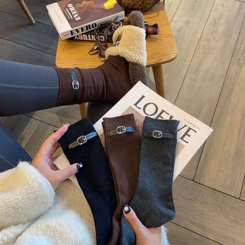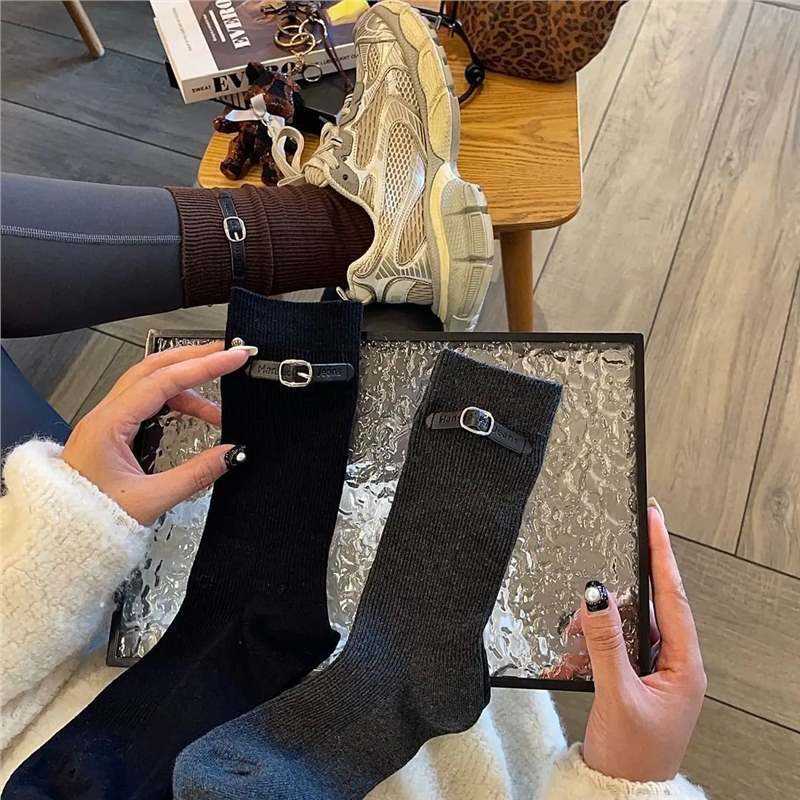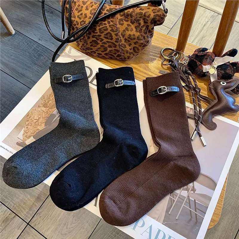 Casual Crew Socks Fashion Women's Heavy Embroidered Sock CE Certificate Garter Clip Vintage Ins-Style Medium Calf Socks