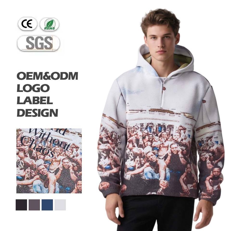 Casual Custom Men Anime Woven Knitting Pullover Hoodies Male Vintage Streetwear Thick Jacquard Tapestry Hoodie