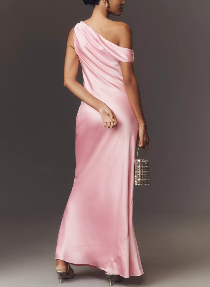 Casual Floral Embroidered Faux Fur Maxi Dress Off-The-Shoulder High-Shine Satin Lace Hollow Front Logo Natural Waistline Summer