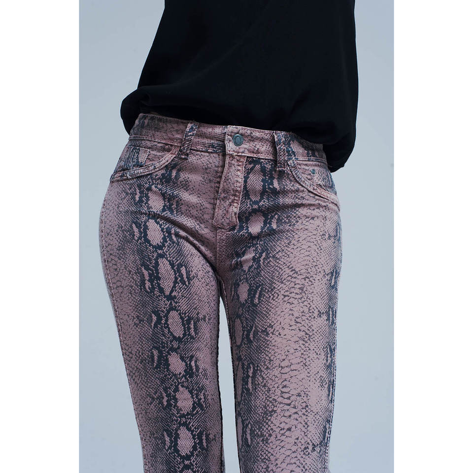 Casual High Street Reversible Animal Print Pink Jeans 97% Cotton 3% Elastane Large/XL Size Low High Options Loose Boyfriend Wide