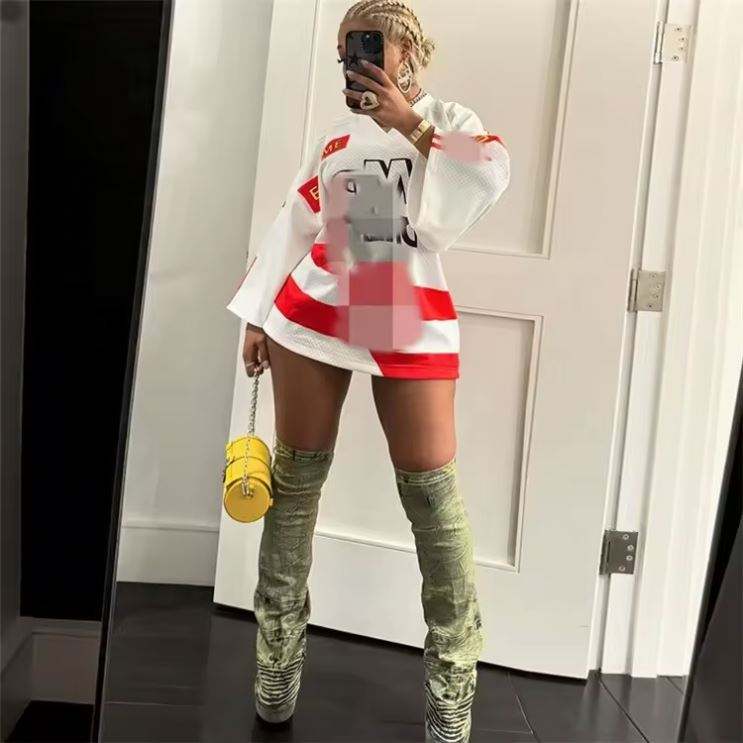 Casual Hipster Women T-shirt Contrast Letter Print Long Sleeve V-neck Wild Streetwear Loose Summer Comfortable Tees