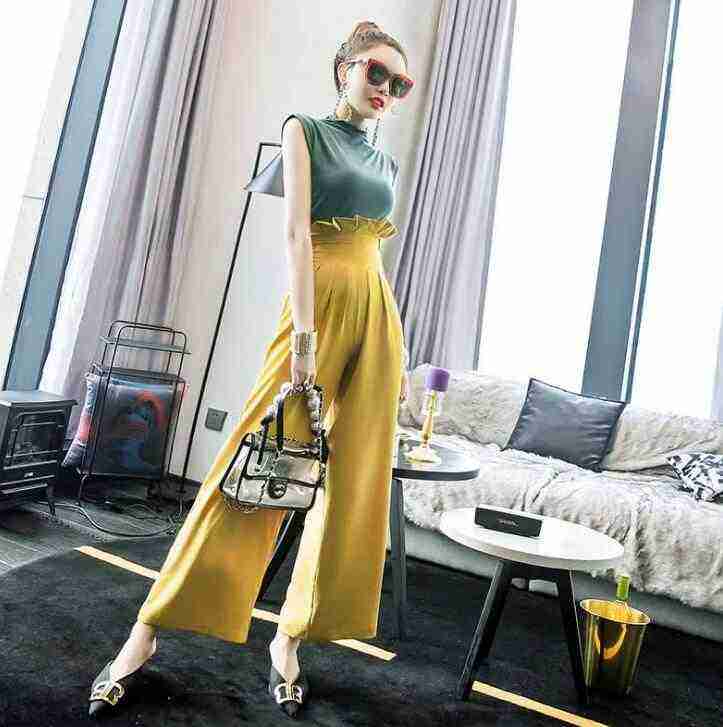 Casual Ladies and Foreign Fashion Suit Pants Two Sets of Women's New Summer Temperament High Waist Wide Leg Pants