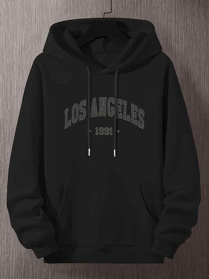Casual Long-Sleeve Los Angeles 1991 Men's Street Style Hoodie Black Print Pullover 100% Bamboo Fiber Satin Windproof Autumn