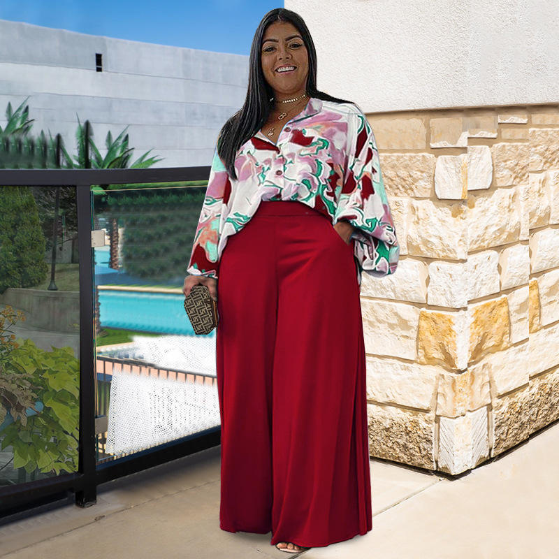 Casual Long Sleeve V-neck Crop Top and Pants Fashion Digital Printing Ankle Women Two Piece Set Clothing Plus Size