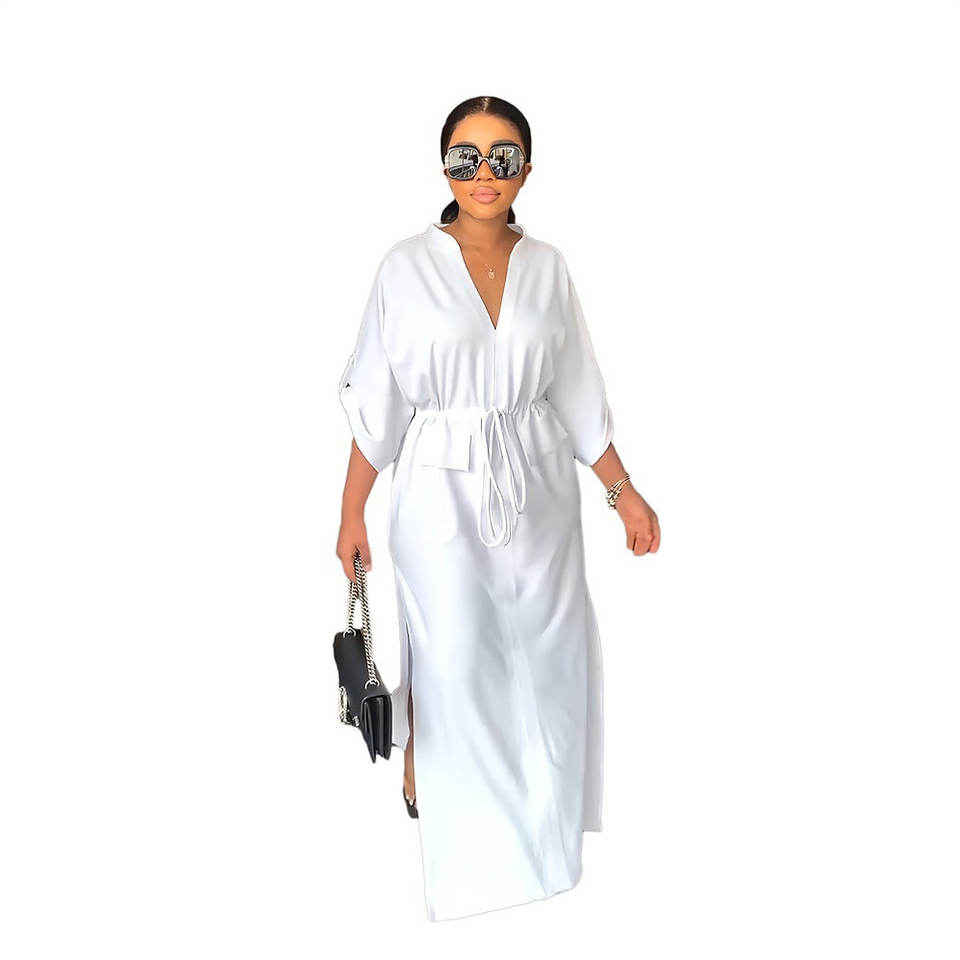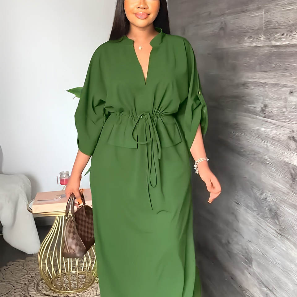 Casual Office Lady Half Sleeve V-Neck Dress Plus-Size Floor-Length Puff Sleeves Ruffles Available XS XL African Style Cheap