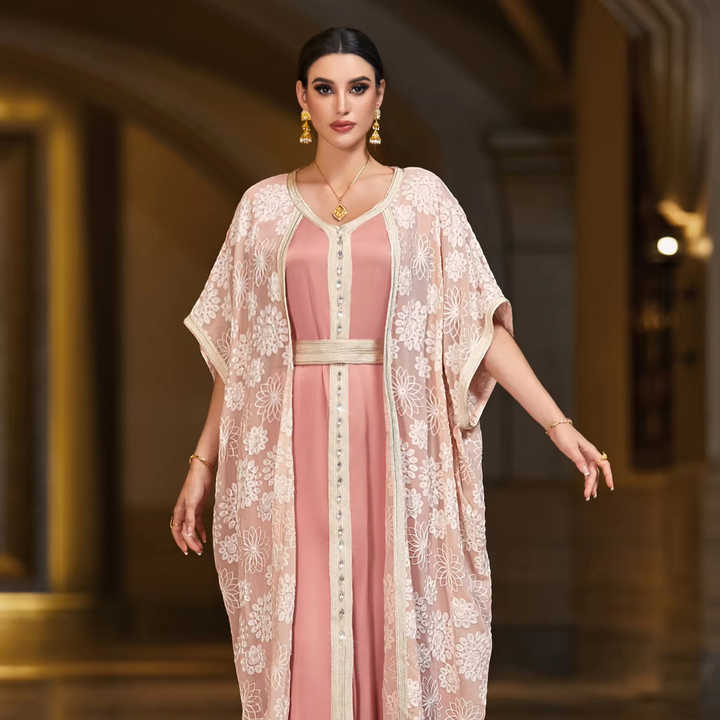 Abito musulmano Casual Premium in poliestere con ricami artigianali per ricevimenti VIP e cene diplomatiche in autunno