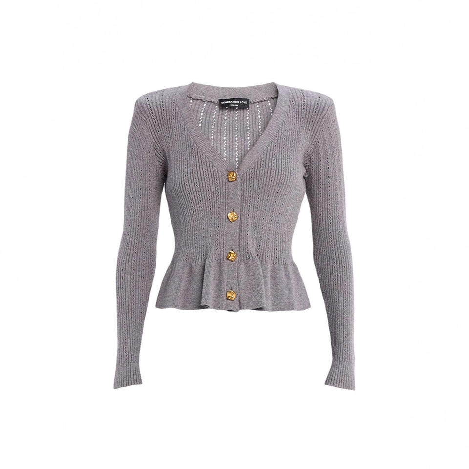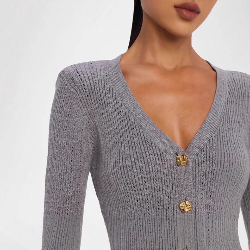 Cardigan maglione Casual Slim tinta unita con scollo a V con bottone di strass con svasato a maniche svasate Design stringente in vita per la primavera
