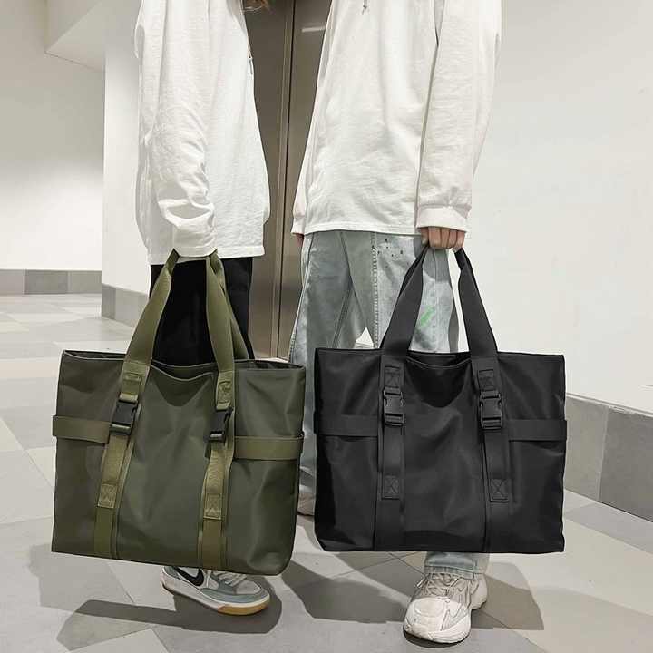 Borsa a Tracolla Casual in Tinta Unita con Cerniera Impermeabile, Logo Personalizzato, Borsa da Shopping in Nylon con Tracolla Regolabile per Uomo, Borsa da Viaggio