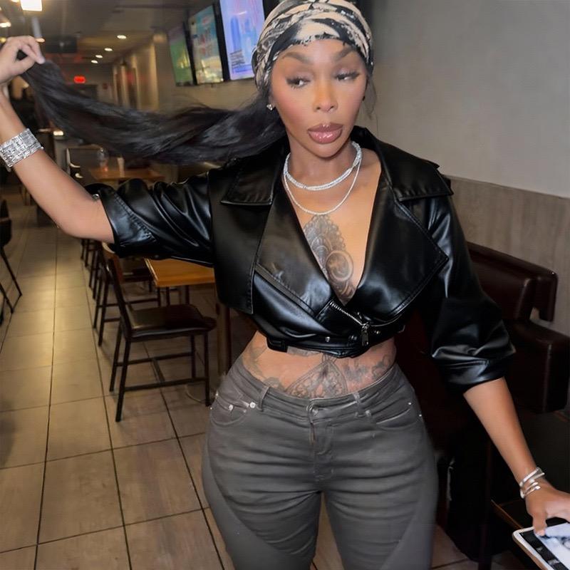 Giacca Corta in Ecopelle per Donna, Cardigan Casual Tinta Unita, Aderente, Manica Lunga