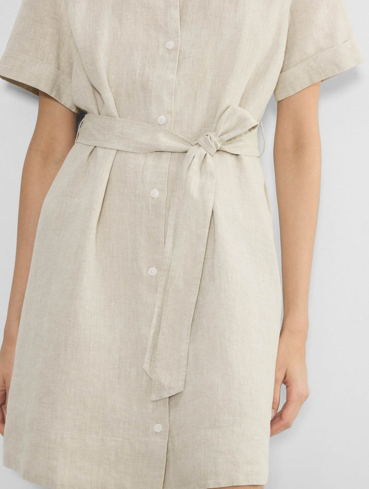 Casual Vintage Summer Cotton Linen Shirt Dresses Chic Button Decoration Breathable Woven Knee-Length Dress