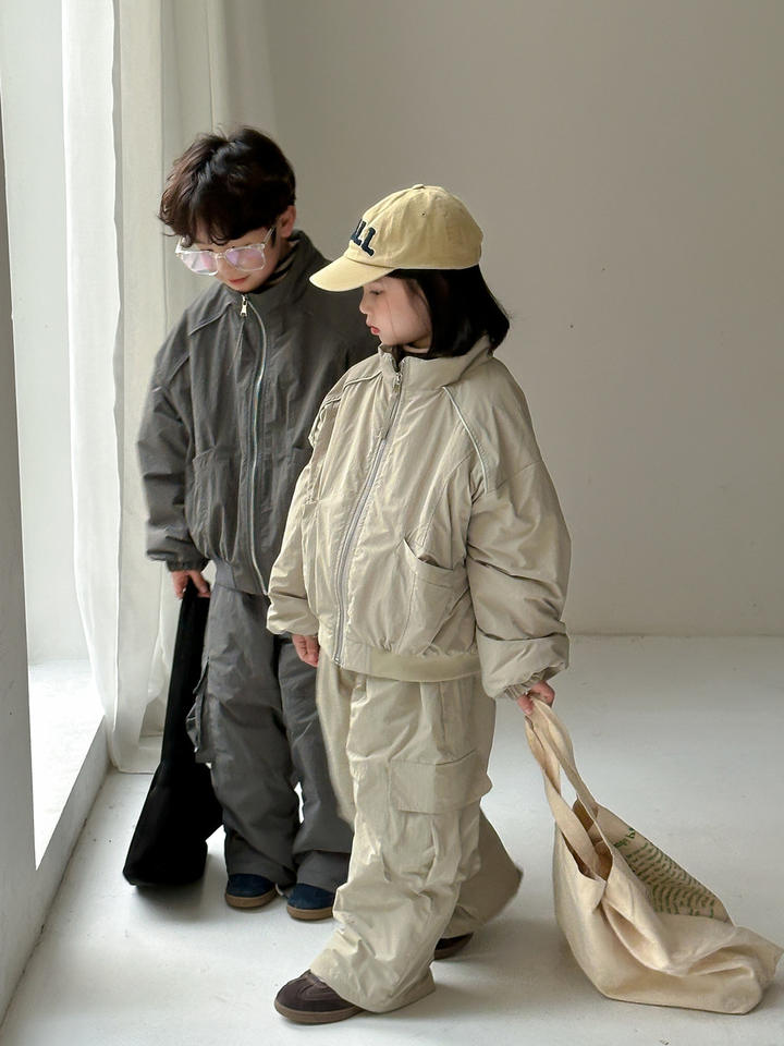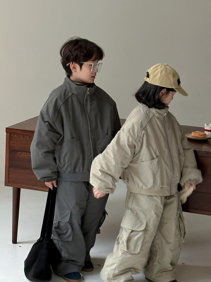 Casual Zipper Jacket for Boys and Girls Winter Cotton-Lined Workwear Suit Thickened Two-Piece Pattern Solid Style for Spring